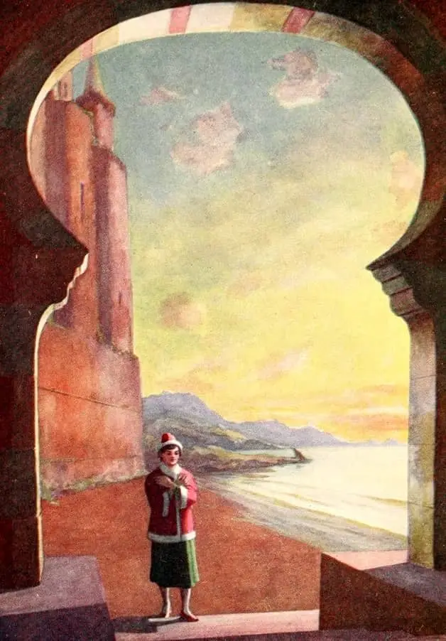 “At sunset he went to the palace.” Illustration by Edward A. Norbury, published in Greek Wonder Tales by Lucy M.J. Garnett (1913), A. and C. Black